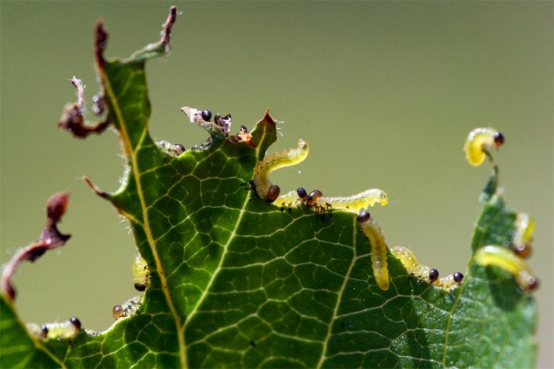 Sommige plagen zoals rupsen en leaf mijnwerkers defoliate tuinen door zich te voeden met de bladeren en stengels van tuin planten en het